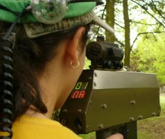 Also, near your trigger are two buttons. One on the right, one on the left. (Each model has them in slightly different places, so flip your gun over after you select it.) The one on the left is for reloading. Always remember: “Left is for load!” Press it once and you’ll hear a single click. That means you’ve got no bullets in your gun, so hide behind a rock, tree, or friend you don’t like very much and wait for the double-click. The double-click tells you that your gun is loaded and ready to fire. The button on the right changes your gun from fully auto (or rapid-fire, the default mode) and semi auto (or single-shot). We generally recommend you leave it in full auto, but when you play laser tag with our equipment you can choose whatever you like on the fly.